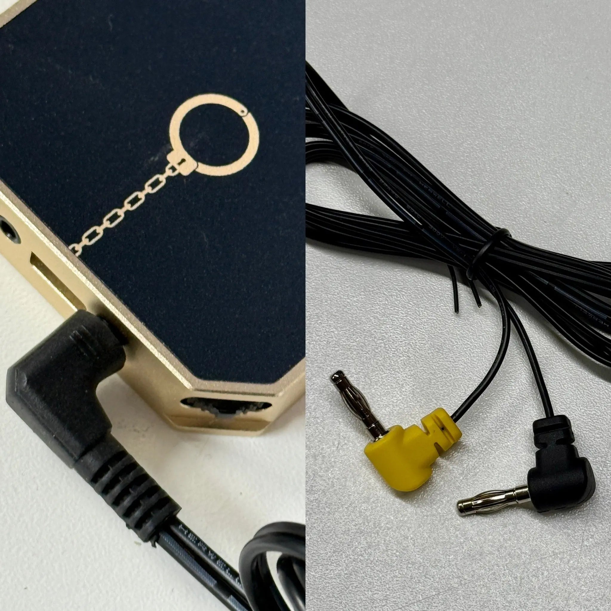 Custom designed by E-Stim Systems and suitable for connection to power boxes from RIMBA and DG-LABS (Coyote 3 and Coyote 2) with 2.5mm output sockets.